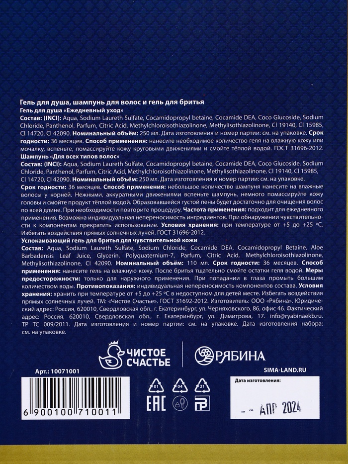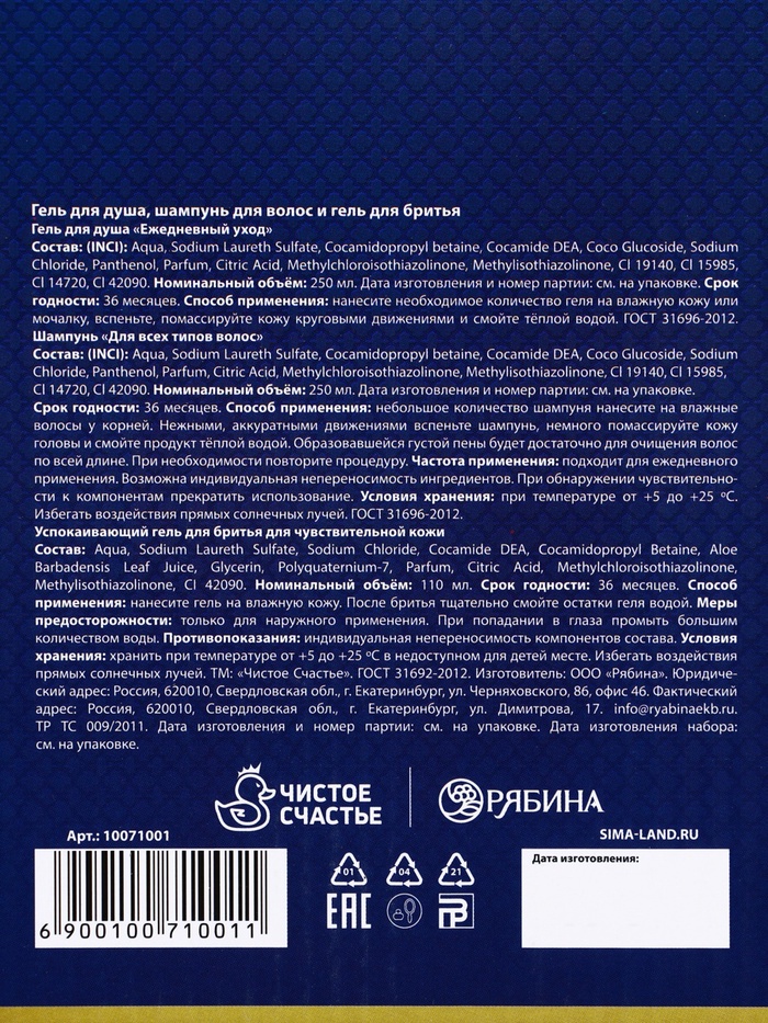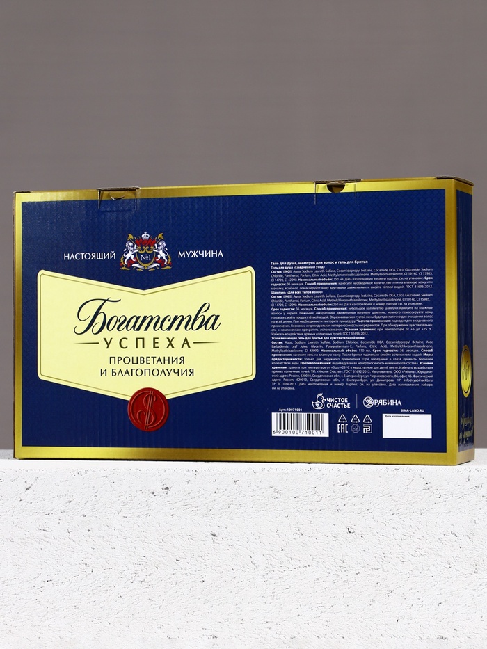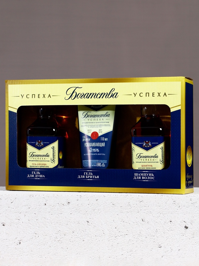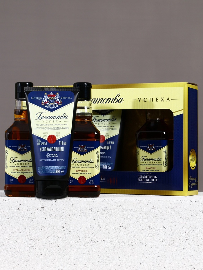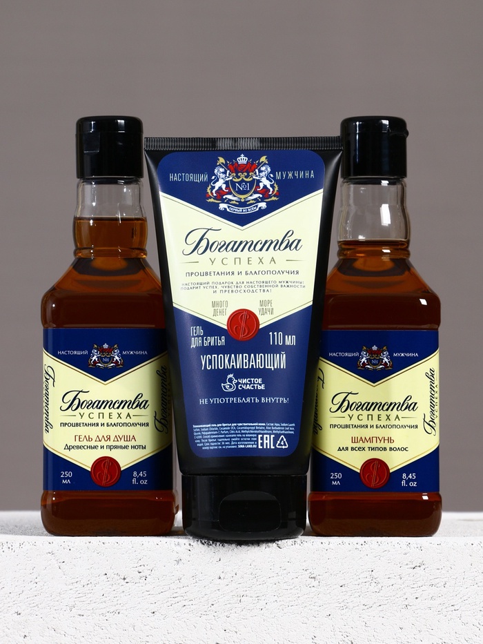 Подарочный набор «Богатства», гель для бритья 110 мл, гель для душа и шампунь для волос виски, 2×250 мл, Чистое счастье — Характеристики