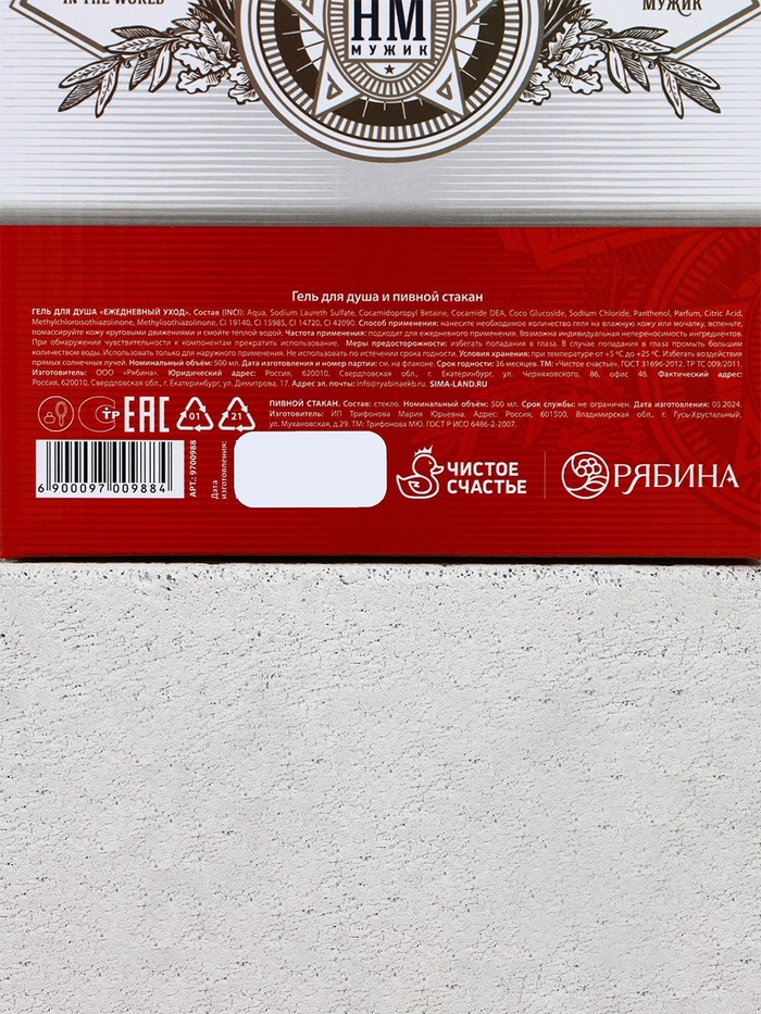 Подарочный набор «Будь!», гель для душа пиво 500 мл и стакан для пива 500 мл, Чистое счастье — Характеристики
