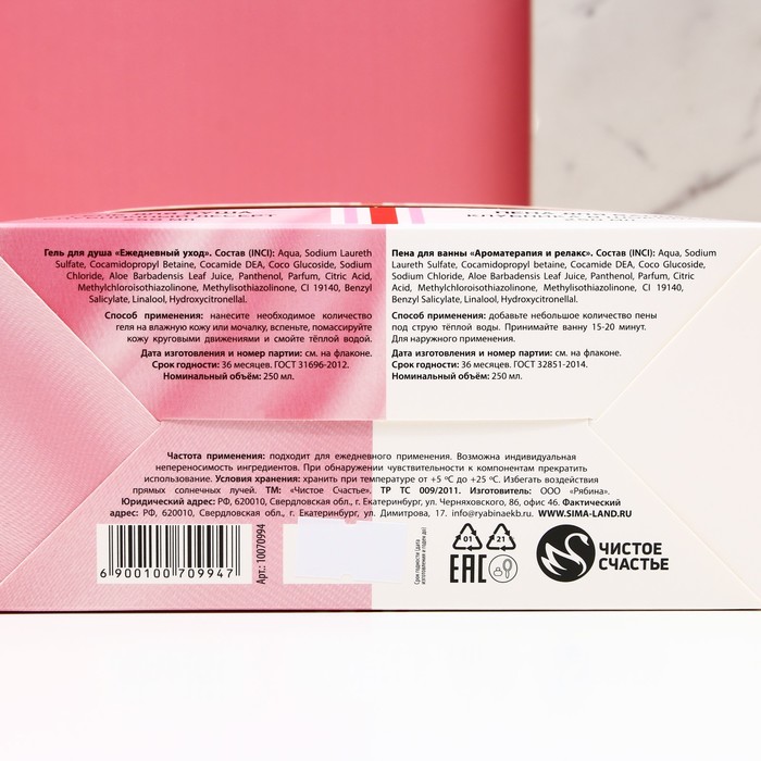 Подарочный набор ЧИСТОЕ СЧАСТЬЕ «Для тебя»: гель для душа и пена для ванны шампанское, 2х250 мл — Характеристики