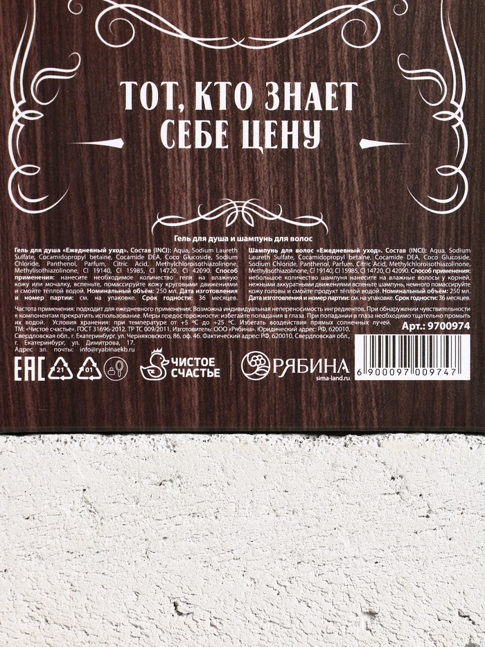 Подарочный набор ЧИСТОЕ СЧАСТЬЕ «Крутой мужик»: гель для душа и шампунь для волос, 2х250 мл — Характеристики
