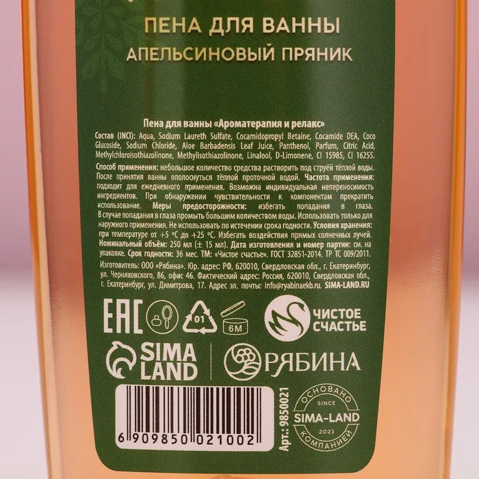 Составляющие набора: Пена для ванн
