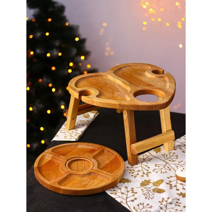 Подарочный набор деревянной посуды Adelica «С любовью», столик для вина d=32 см, менажница d=25 см, подсвечник d=8 см, берёза — Характеристики