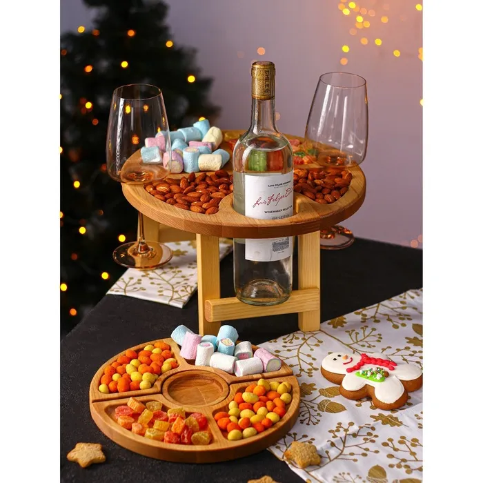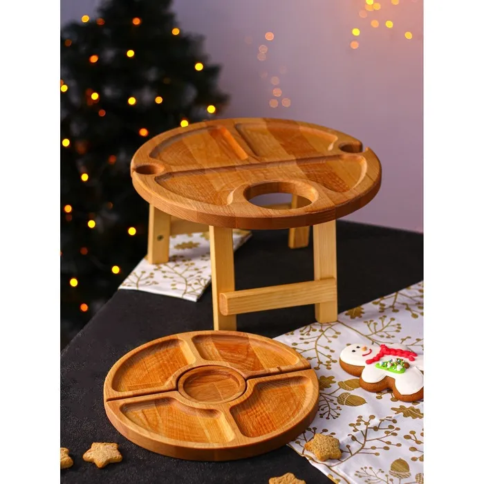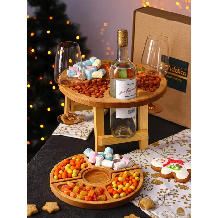 Подарочный набор деревянной посуды Adelica «Винный», столик для вина d=32 см, менажница d=25 см, подсвечник d=8 см, берёза — Характеристики