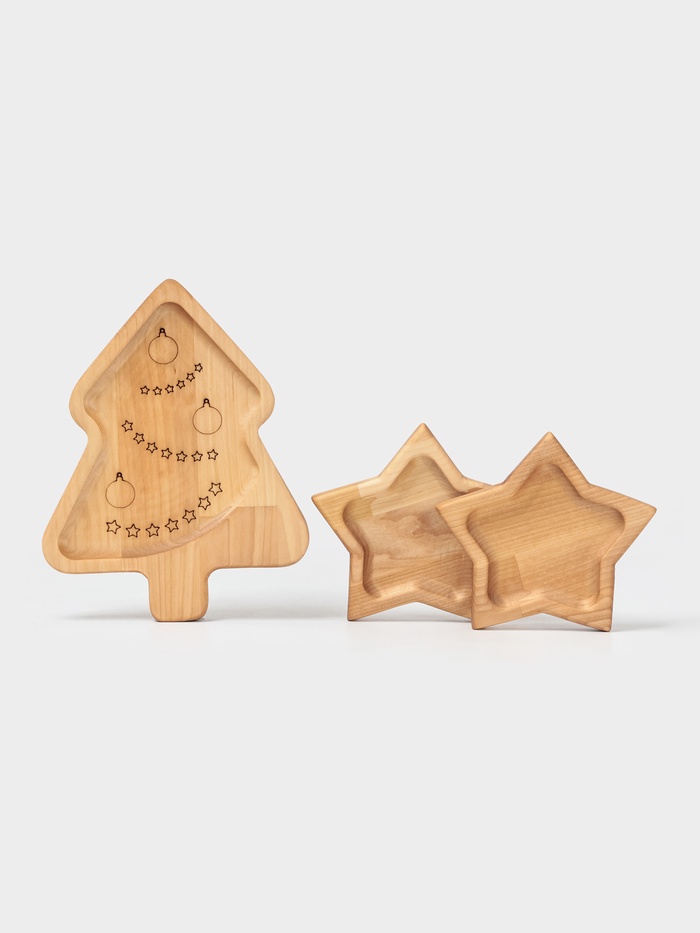 Подарочный набор деревянной посуды Adelica «Волшебство», менажницы: ёлка 24×18.5×1.8 см, звезда 15×15×1.8 см, масло 100 мл, в подарочной коробке — Характеристики