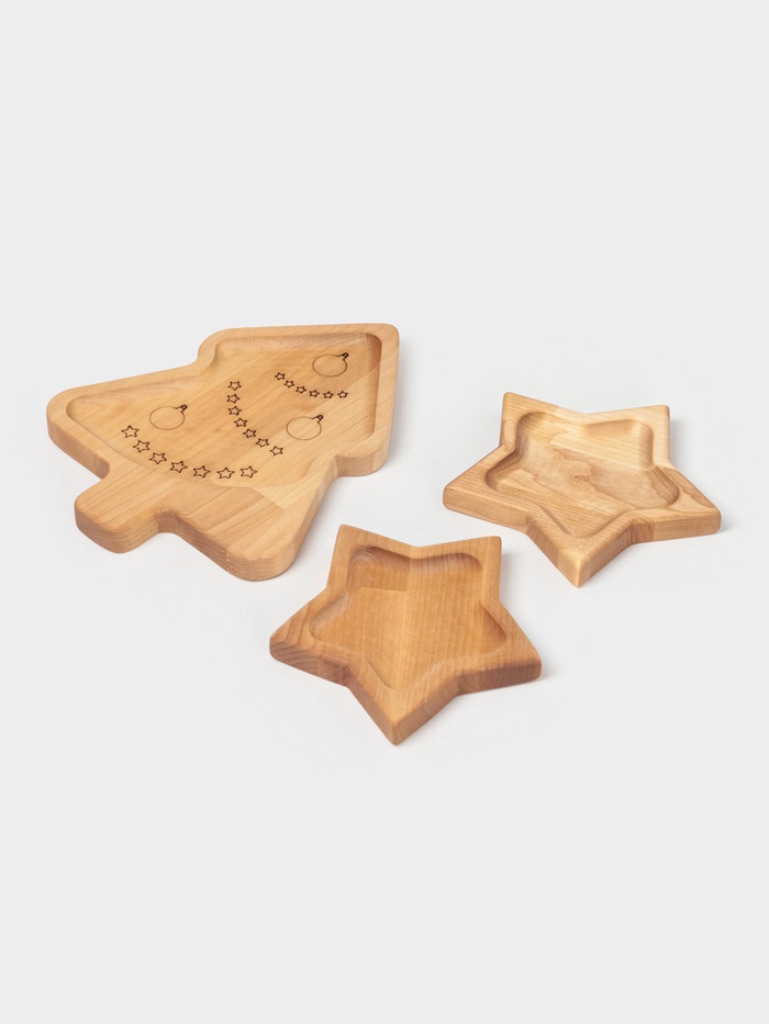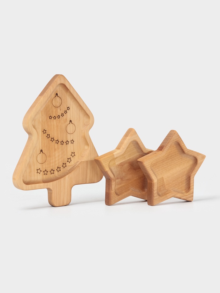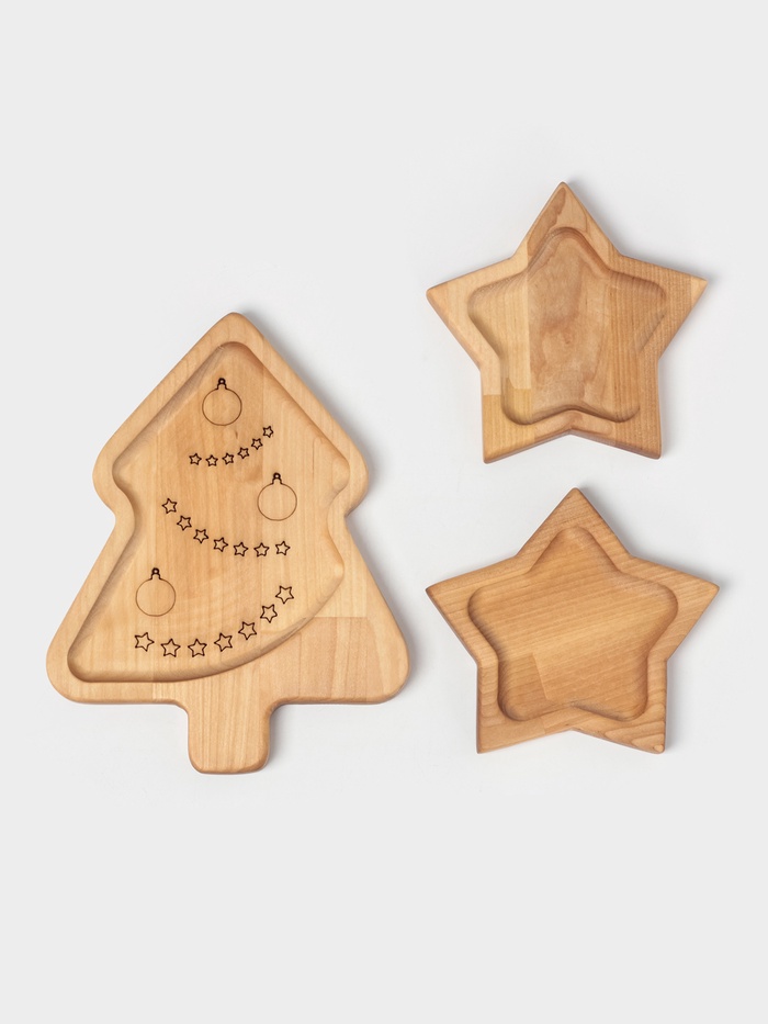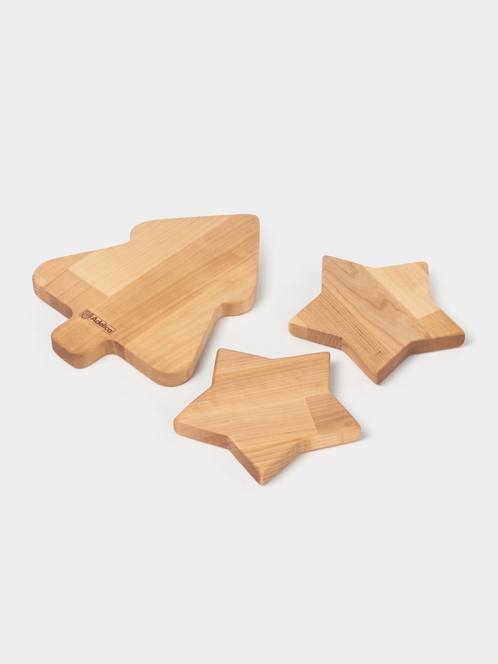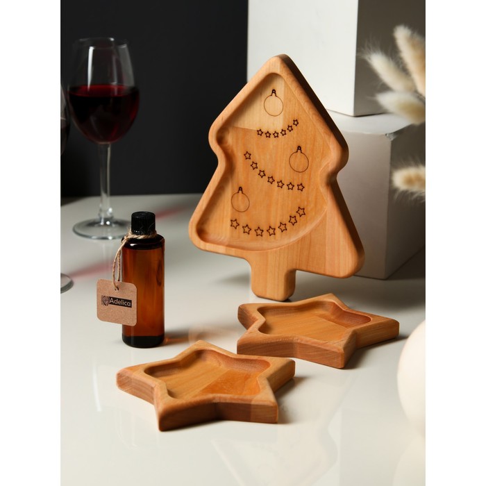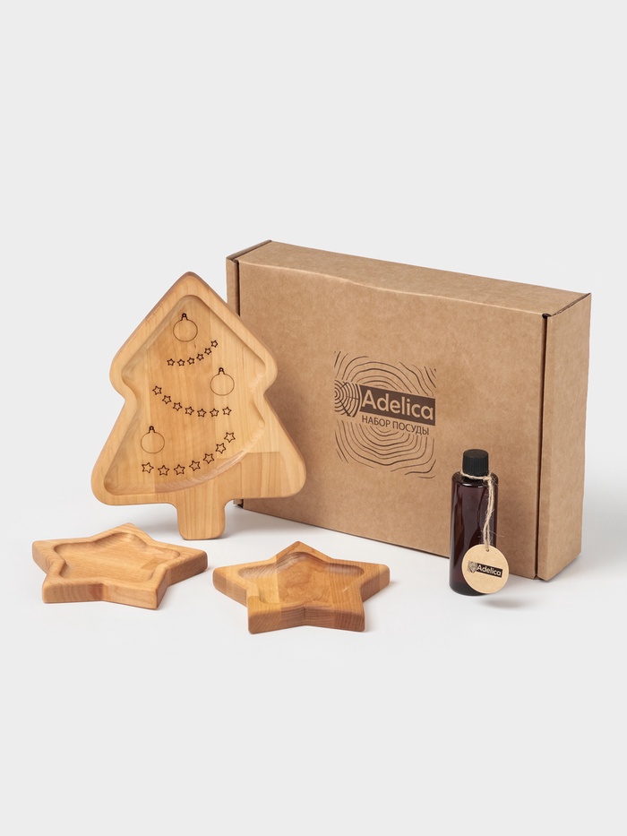 Подарочный набор деревянной посуды Adelica «Волшебство», менажницы: ёлка 24×18.5×1.8 см, звезда 15×15×1.8 см, масло 100 мл, в подарочной коробке — Характеристики