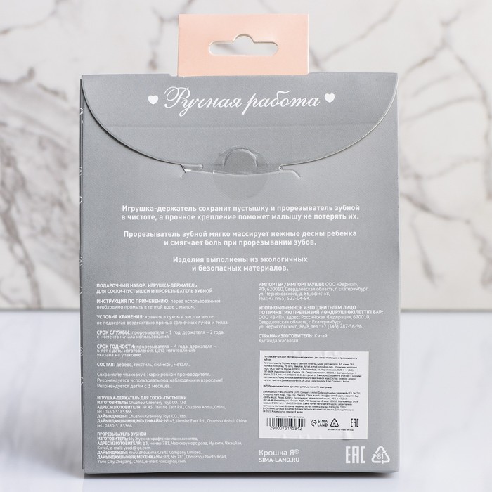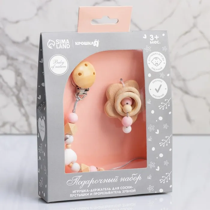 Подарочный набор: Держатель для соски и прорезыватель, розовый, Крошка Я — Характеристики