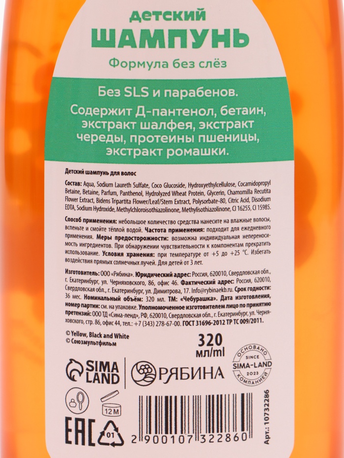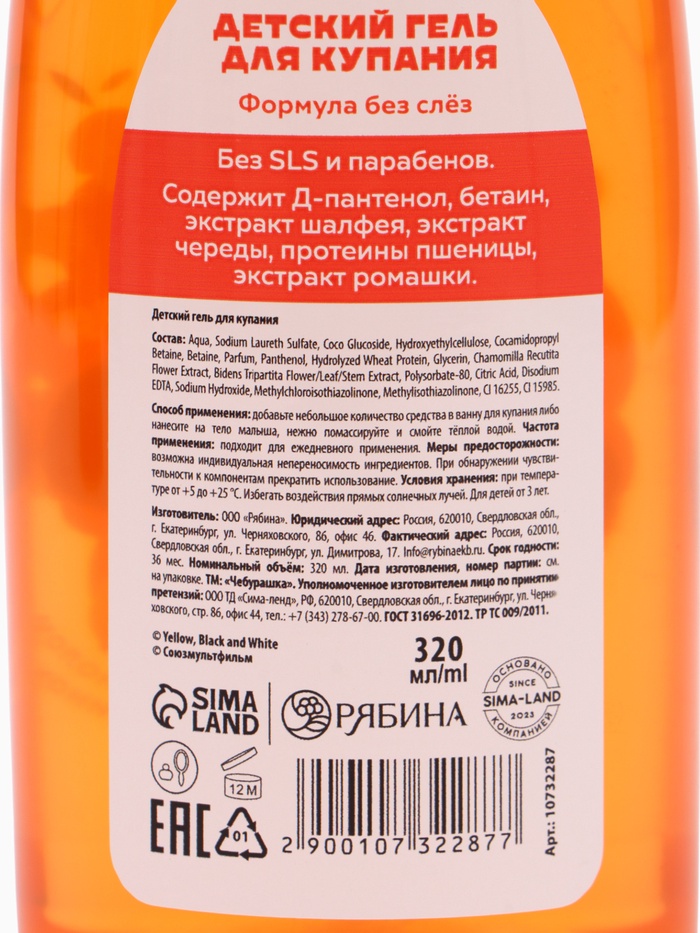 Детский набор «Чебурашка» — нежный уход с добротой любимого героя! В комплекте: шампунь 320 мл и гель для душа 320 мл с мягким составом, подходящим даже для самой чувствительной кожи. Обогащены натуральными экстрактами, не содержат SLS, парабенов и агрессивных отдушек. Яркий, сочный аромат свежего апельсина поднимает настроение и дарит ощущение летнего солнца. На флаконах — милый Чебурашка в апельсиновых мотивах, создающий атмосферу доброй сказки даже во время купания. Подходит для ежедневного использования с рождения. Пусть каждый вечерний ритуал будет тёплым, безопасным и полным уюта — как объятия с Чебурашкой!