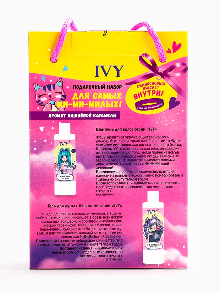 Подарочный набор детский IVY, шампунь 200 мл, гель для душа 200 мл, браслет силиконовый, аромат вишневая карамель — Характеристики