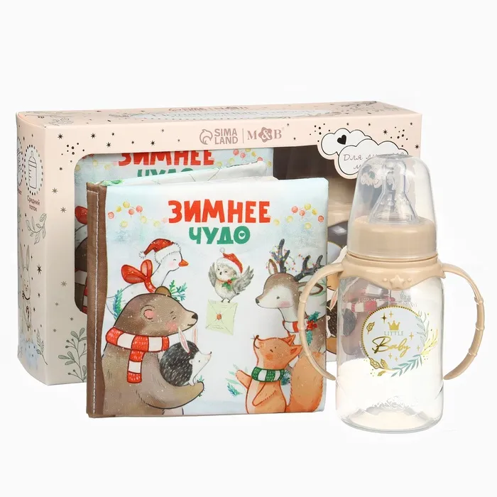 Подарочный набор из книжки-шуршалки и бутылочки для кормления в яркой упаковке станут отличным подарком для малышей!