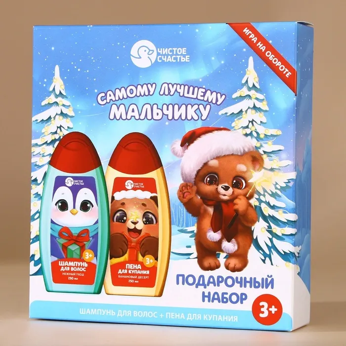 Подарочный набор детский «Лучшему мальчику», пена для ванны и шампунь для волос, 2×250 мл, Чистое счастье — Характеристики