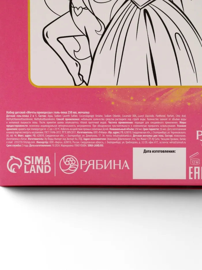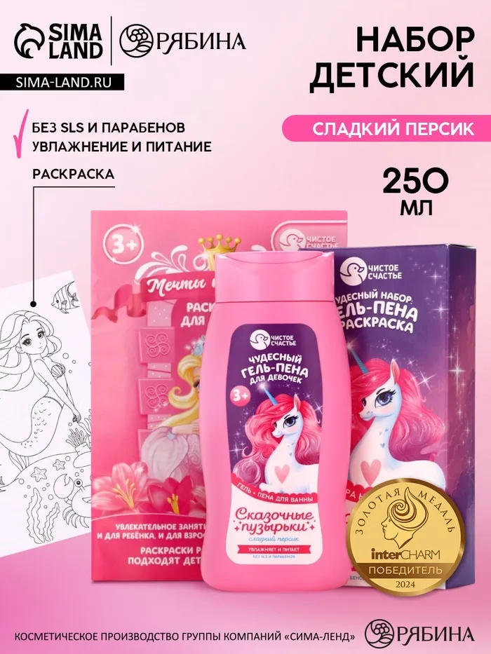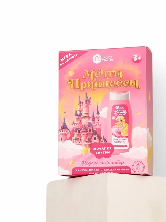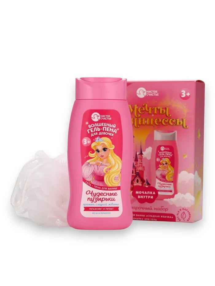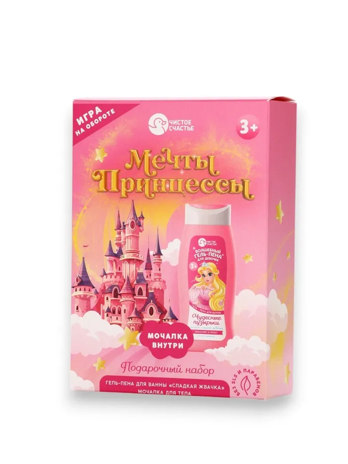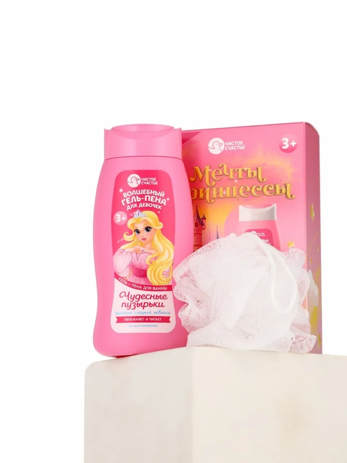 Подарочный набор детский «Мечты принцессы», гель-пена 250 мл, мочалка, Чистое счастье — Характеристики