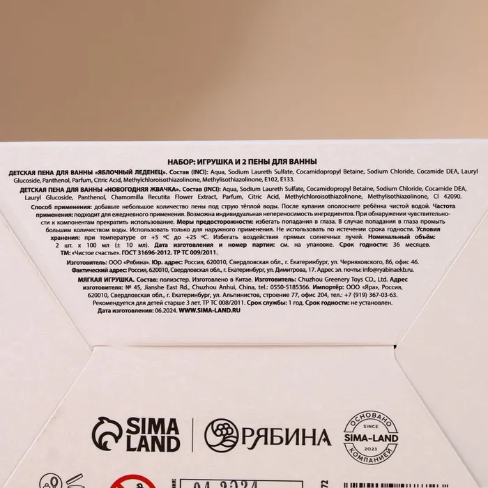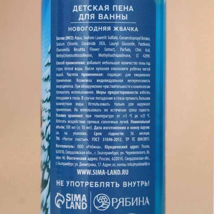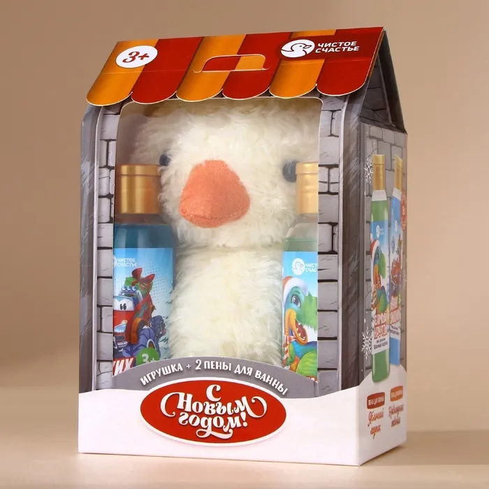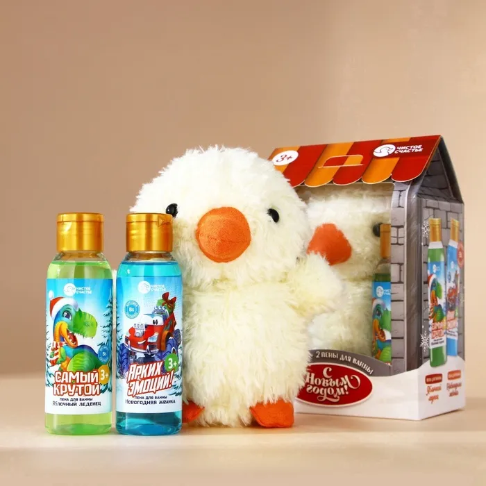 Подарочный набор детский «С Новым Годом»: пена для ванны 2×100 мл и мягкая игрушка утёнок, Чистое счастье — Характеристики