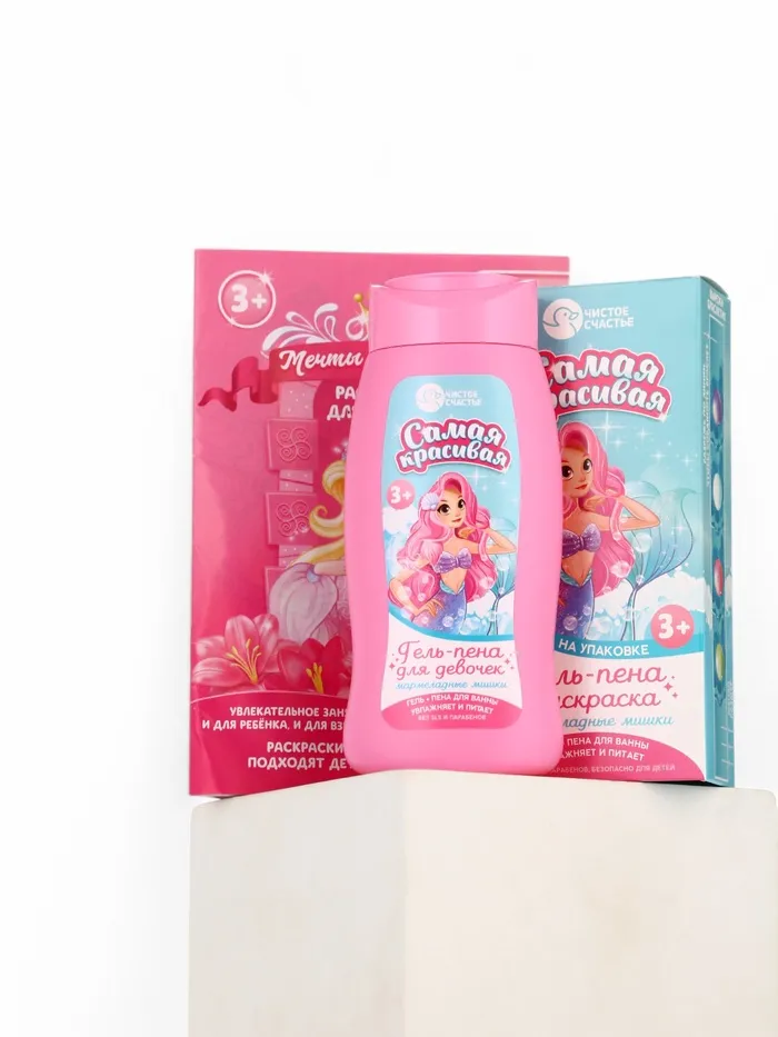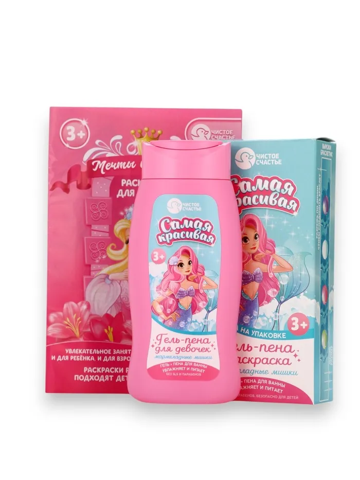 Подарочный набор детский «Самая красивая», гель-пена 250 мл, раскраска А5, Чистое счастье — Характеристики