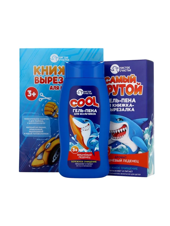 Подарочный набор детский «Самый крутой», гель-пена 250 мл, книжка-вырезалка А5, Чистое счастье — Характеристики
