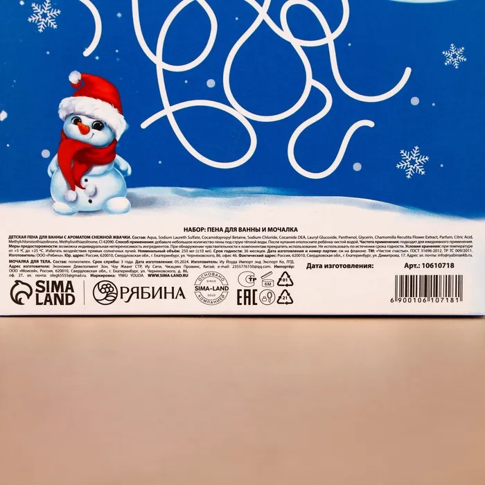 Подарочный набор детский «Счастливого праздника»: пена для ванны 250 мл и мочалка для тела, Чистое счастье — Характеристики