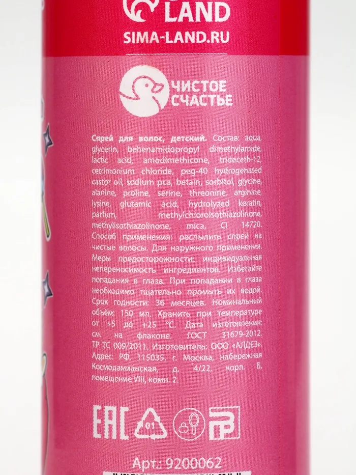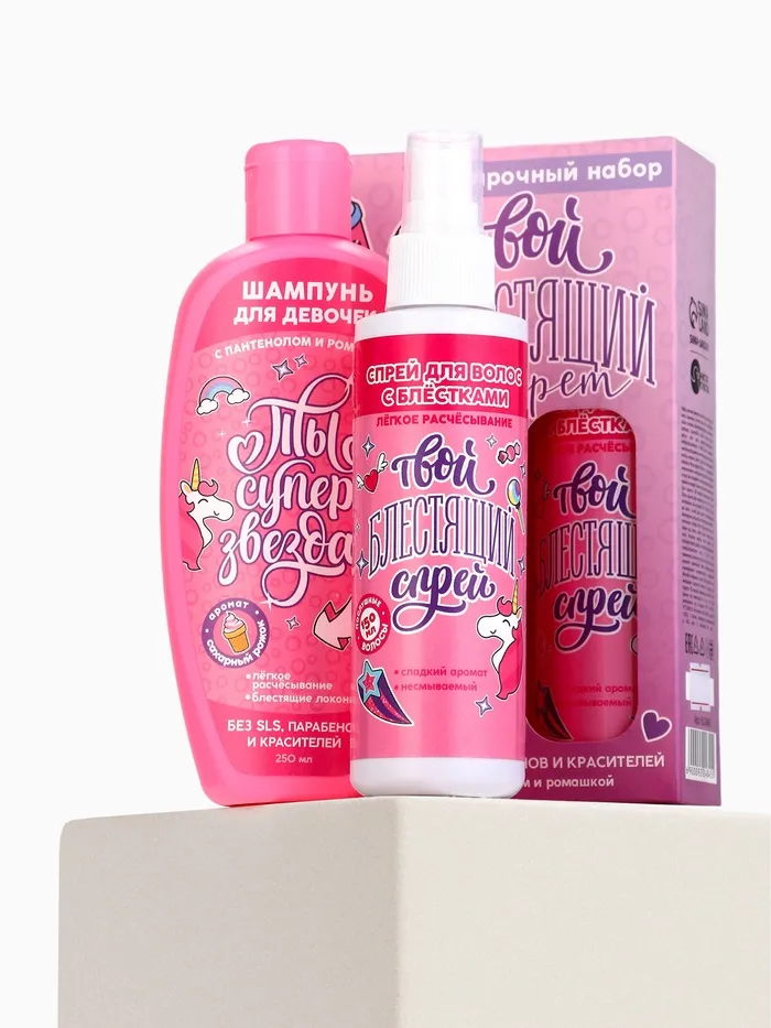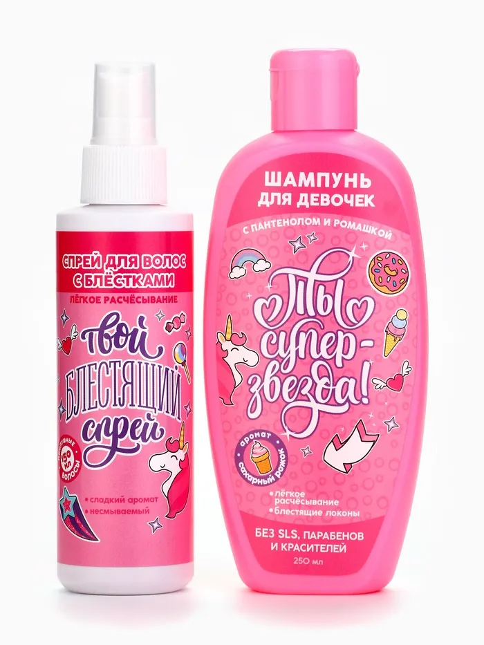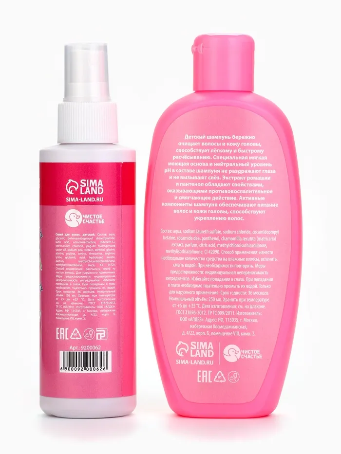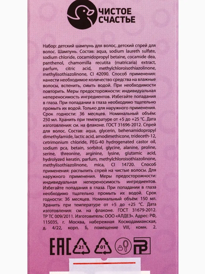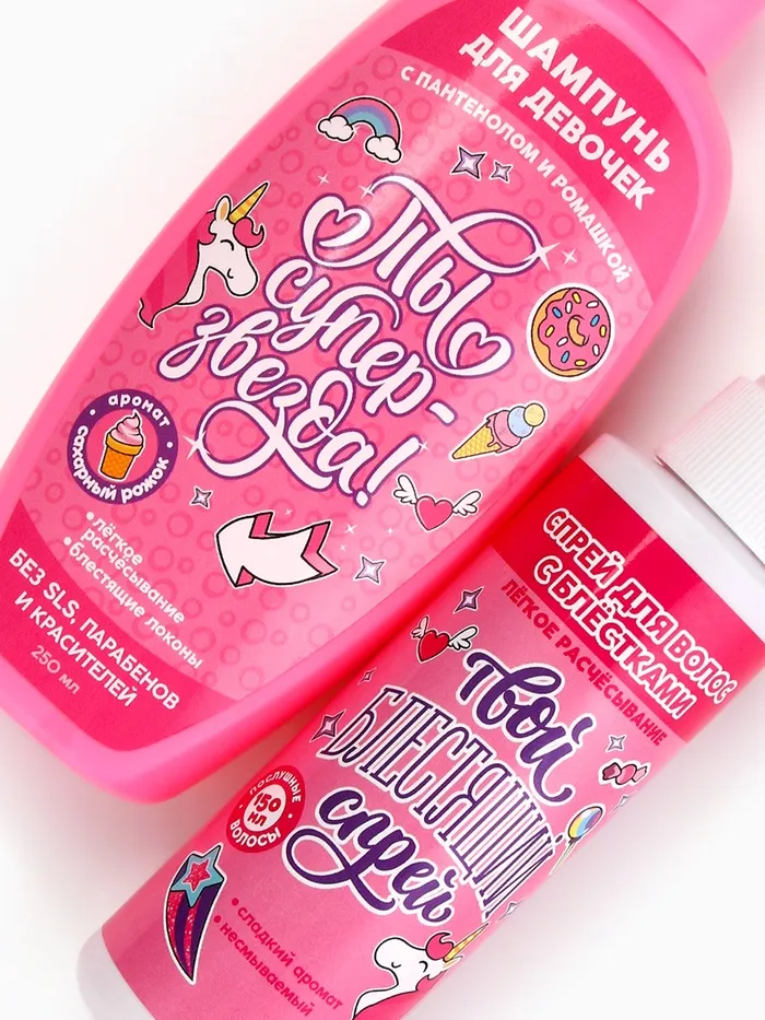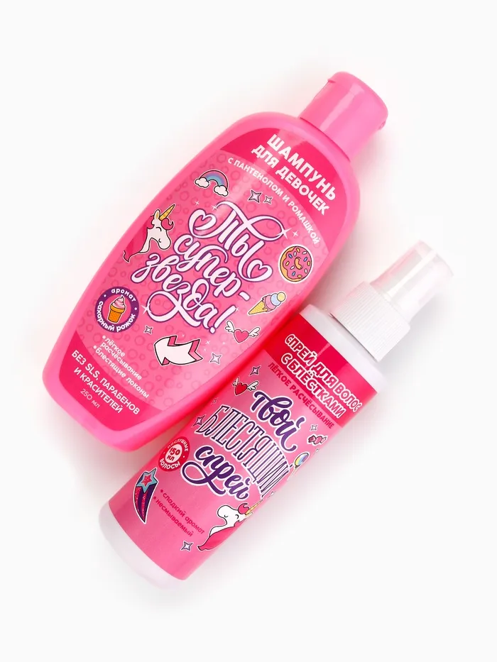 Подарочный набор детский, шампунь для волос 250 мл и спрей волос 150 мл, Чистое счастье — Характеристики