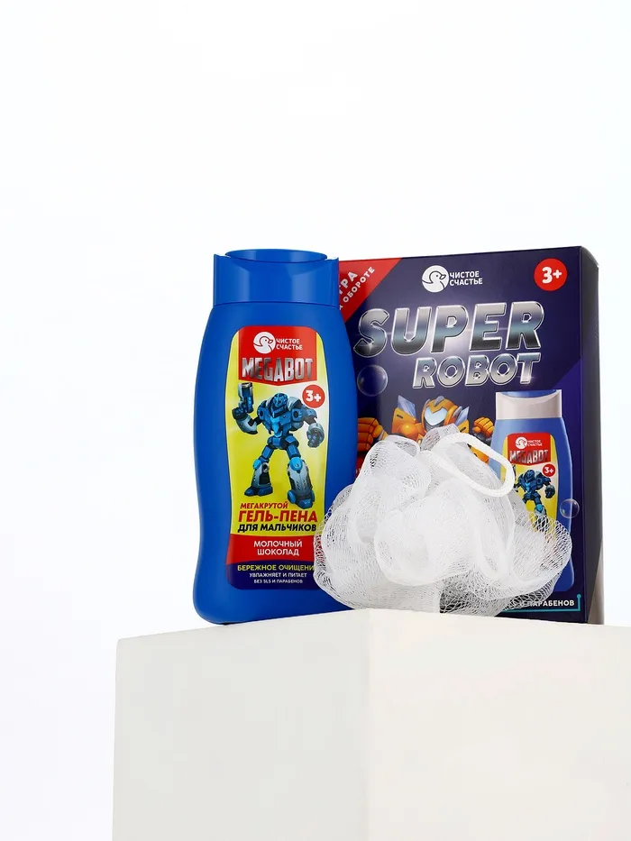 Подарочный набор детский SUPER ROBOT, гель-пена 250 мл и мочалка, Чистое счастье — Характеристики