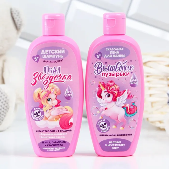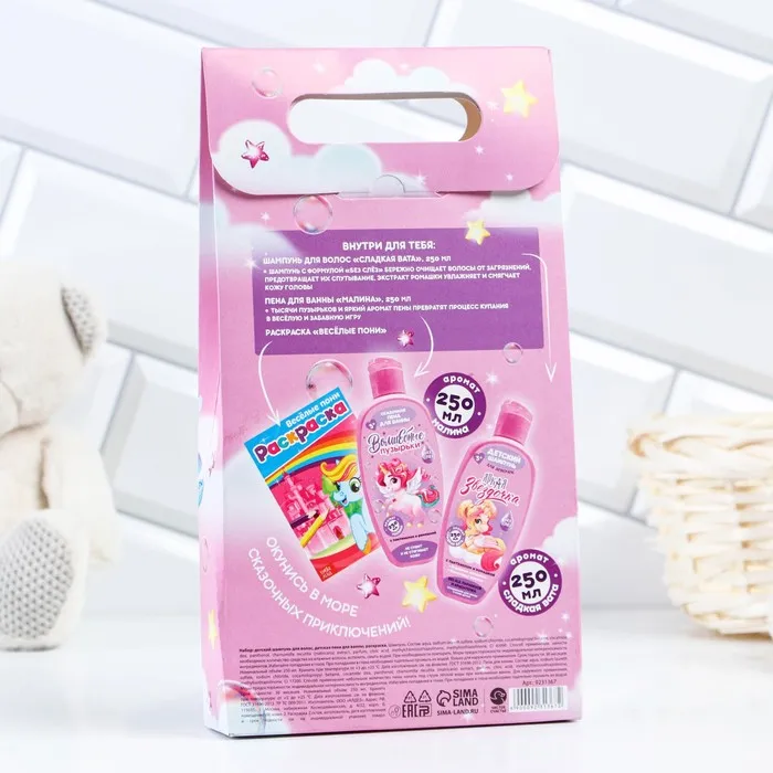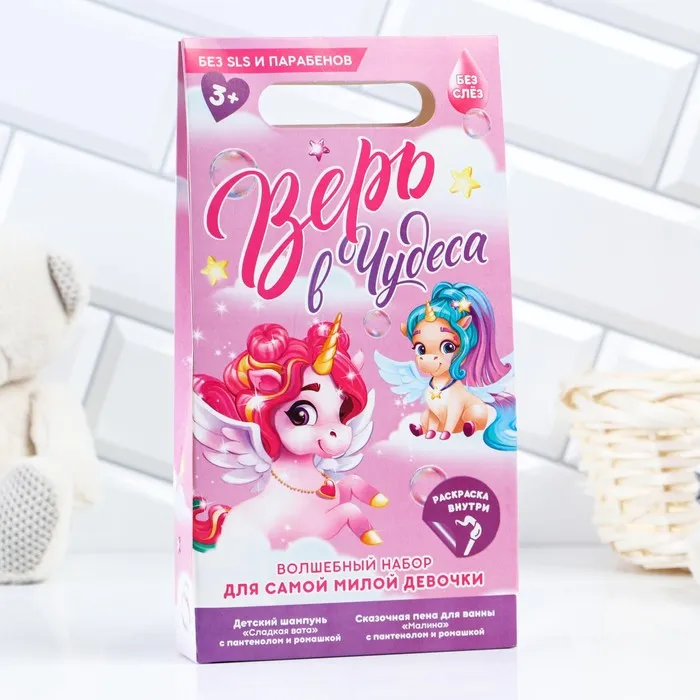 Подарочный набор детский «Верь в чудеса»: пена для ванны и шампунь для волос, 2×250 мл, раскраска, 3+, Чистое счастье — Характеристики