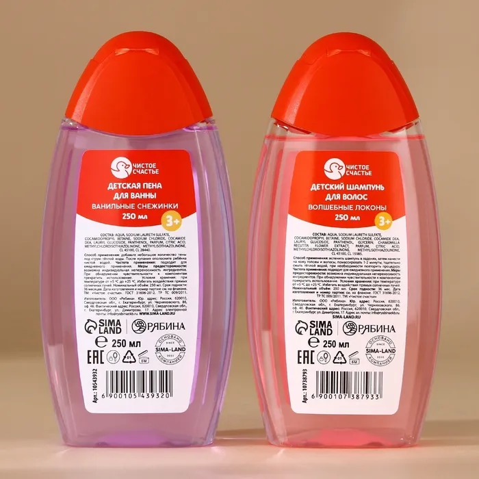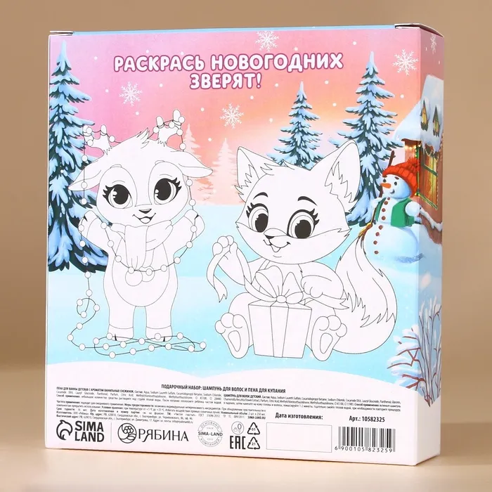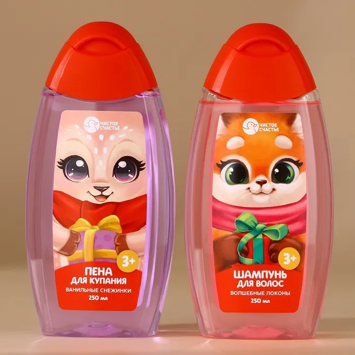 Подарочный набор детский «Волшебного Нового Года», пена для ванны и шампунь для волос, 2×250 мл, Чистое счастье — Характеристики