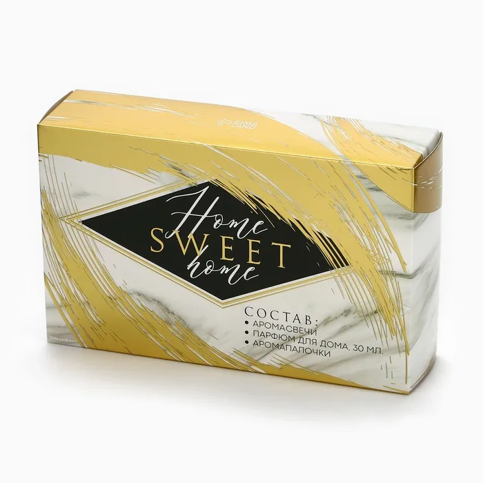 В наборе «Время кофе» от торговой марки SEE YOU HOME вы найдете три свечи в стеклянных стаканчиках и ароматический диффузор с деревянными палочками. Все предметы украшены стильным золотистым рисунком.