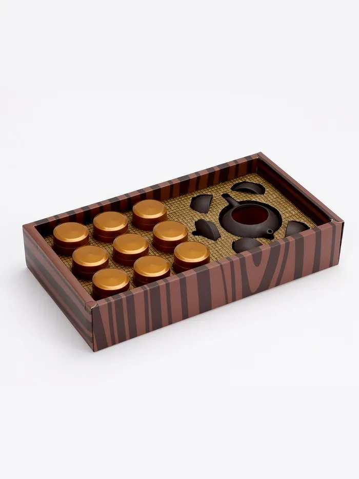 Подарочный набор для чайной церемонии «Золотые брови», чайник, пиалы 4 шт., китайский чай, 9 капсул