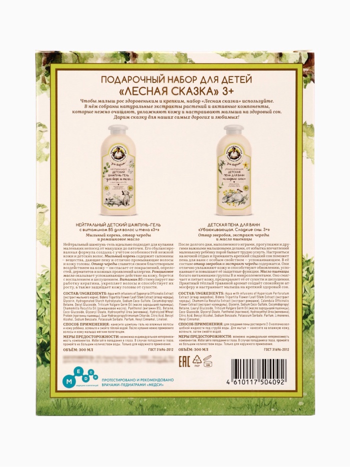 В основе набора — натуральные экстракты сибирских трав и лесных ягод, известных своими успокаивающими и ухаживающими свойствами. Каждое средство разработано по традиционным рецептам сибирских травниц, которые веками использовали природные компоненты для поддержания здоровья, мягкости кожи и общего благополучия детей.