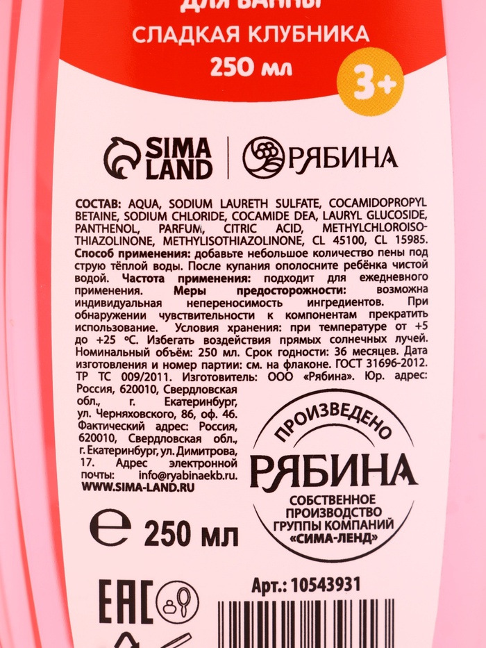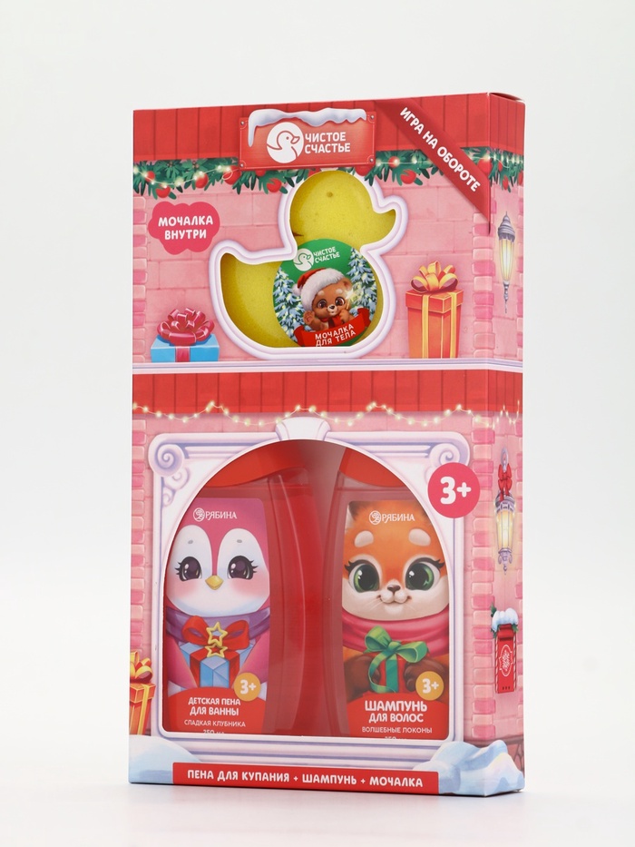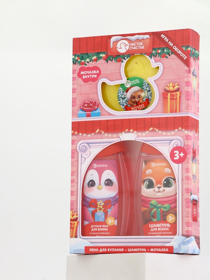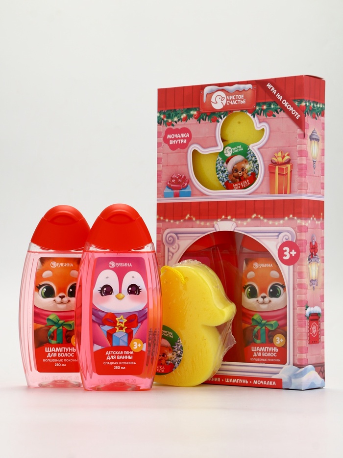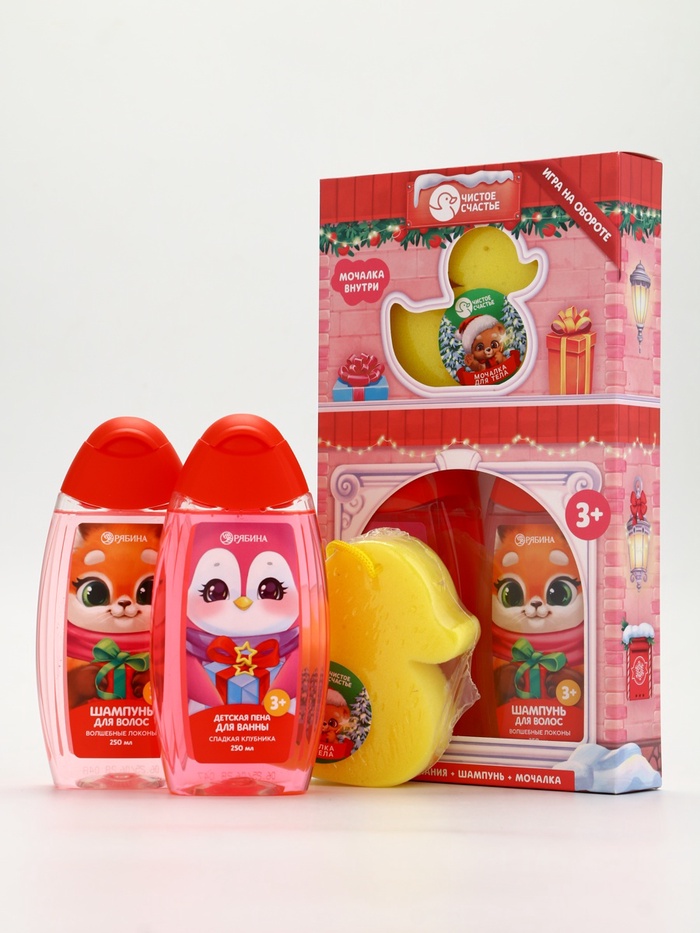 Подарочный набор для девочки «Для тебя»: пена для купания, шампунь для волос и мочалка утка, Чистое счастье — Характеристики