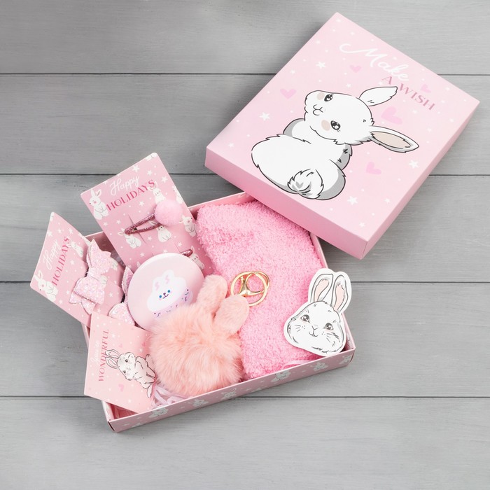Подарочный набор для девочки KAFTAN «Зайка», носки (размер 16-18) и аксессуары — Характеристики