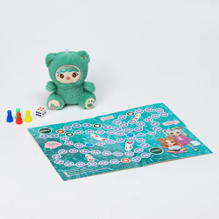 Подарочный набор «Кукла с настольной игрой» станет отличным сюрпризом для девочки. Внутри — очаровательная мягкая игрушка - кукла в виде медвежонка и увлекательная настольная игра-бродилка.