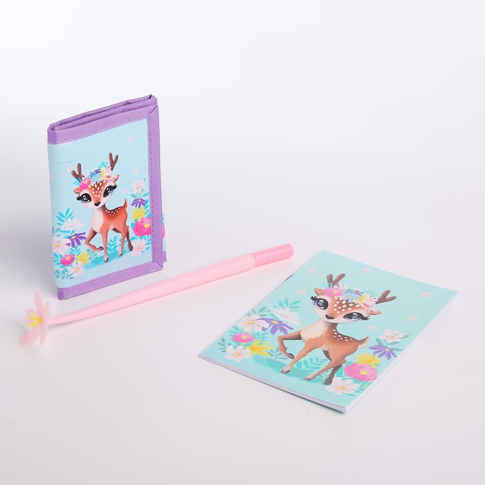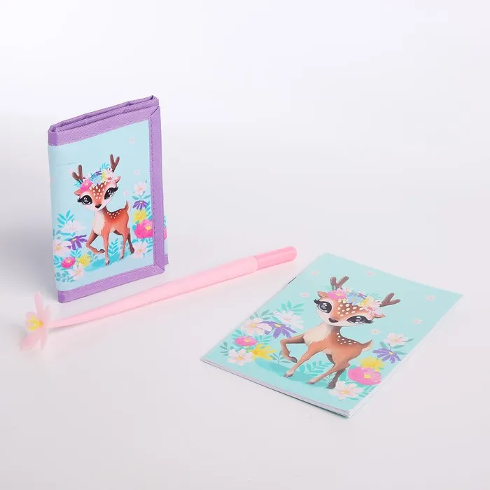 Подарочный набор для девочки «Оленёнок», кошелёк, блокнот, ручка — Характеристики