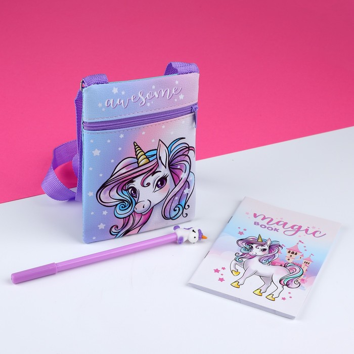 Подарочный набор для девочки «Волшебный единорог», сумка, ручка, блокнот, сиреневый — Характеристики