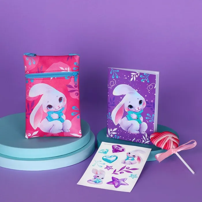 Подарочный набор для девочки «Зайчик», сумка, набор резинок, блокнот, тату — Характеристики