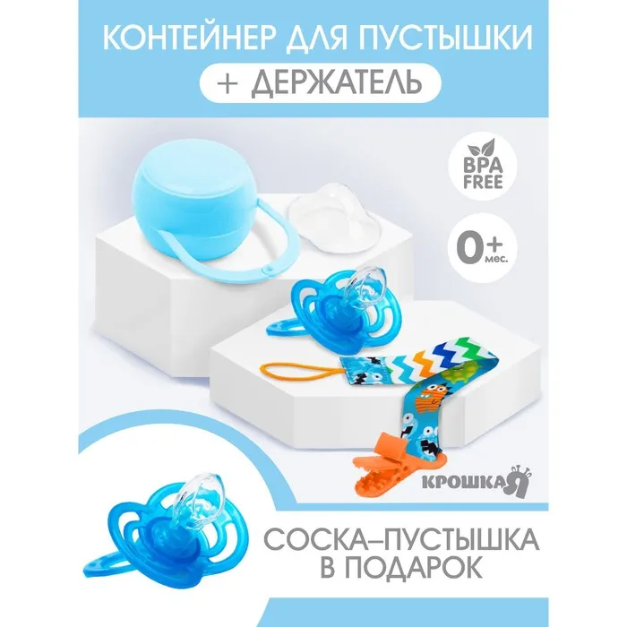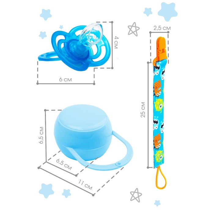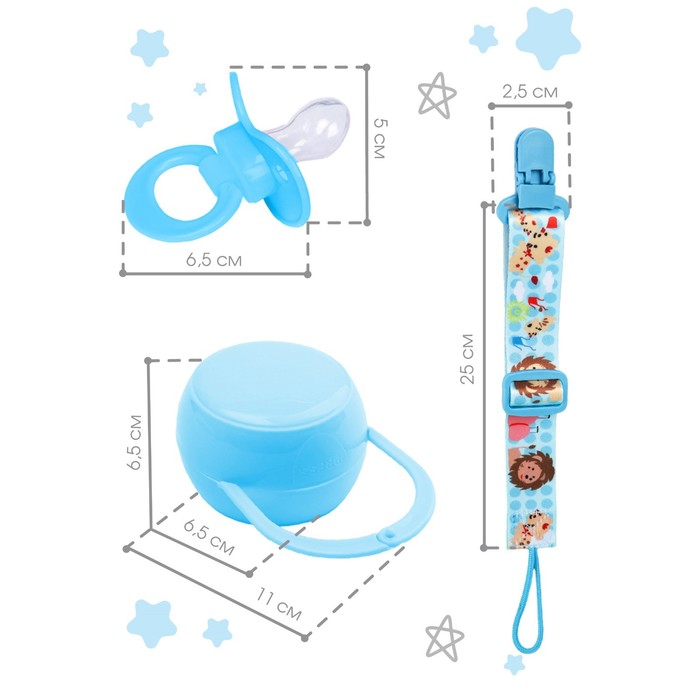 Подарочный набор для мальчика: держатель и контейнер для пустышки + подарок, голубой — Характеристики