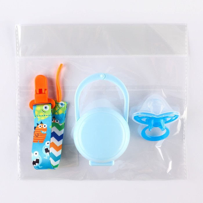 Яркий набор станет прекрасным подарком крохе, который только начинает познавать этот мир, составляющие подарочного набора позволят сохранять чистоту и гигеничность пустышки.