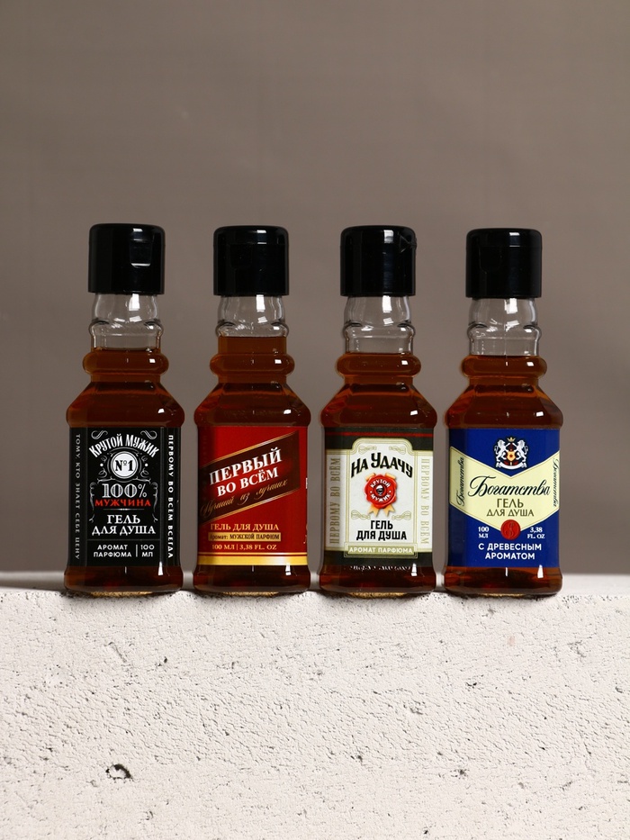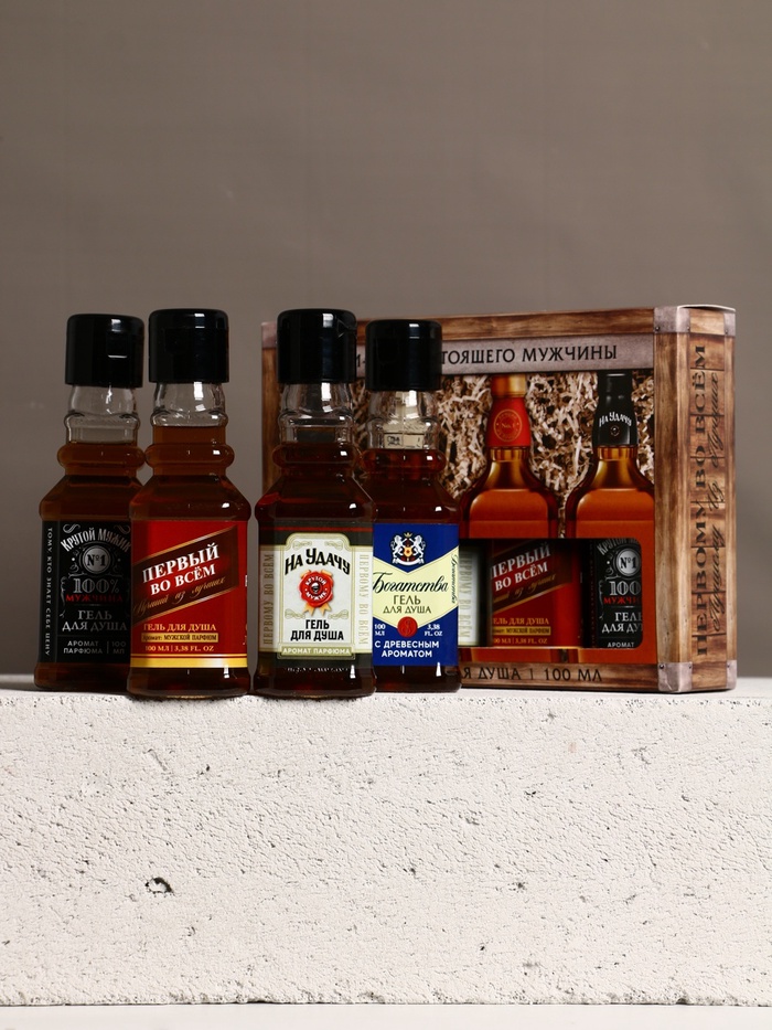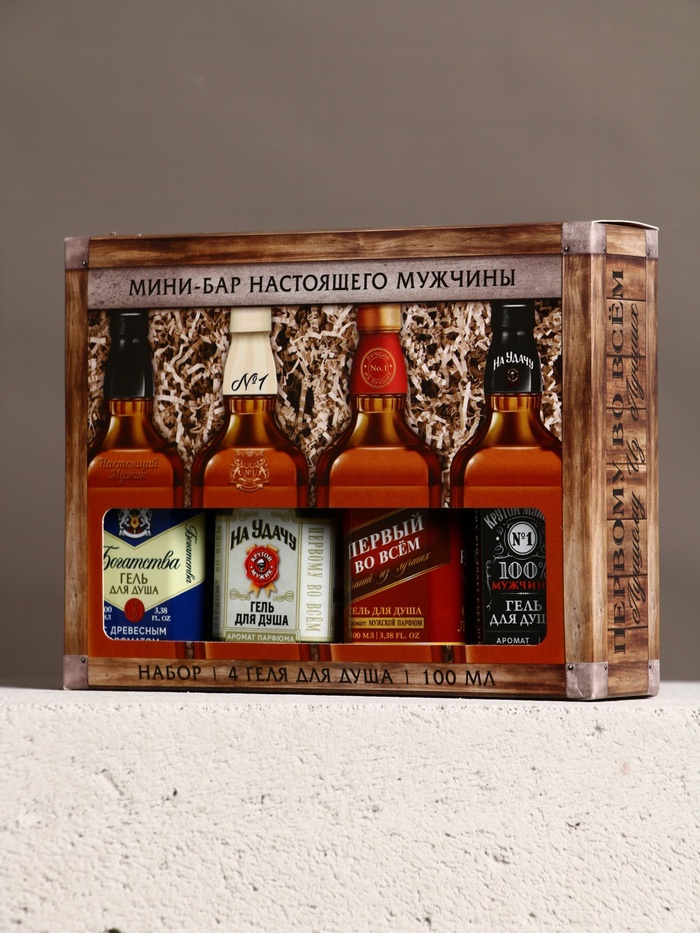 Подарочный набор «Для настоящего мужчины», гель для душа во флаконах виски, 4×100 мл — Характеристики