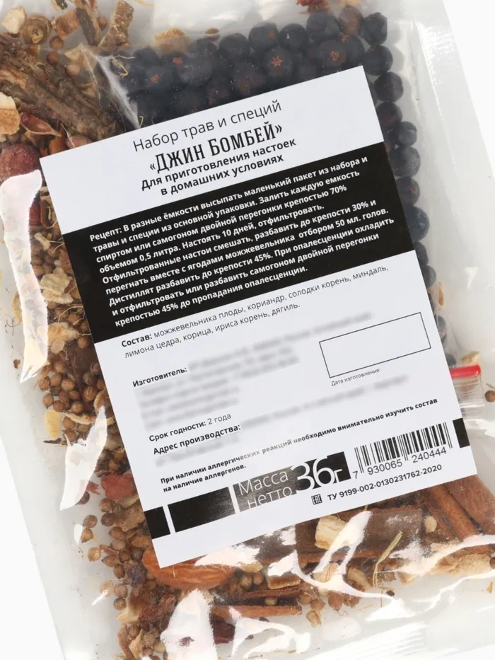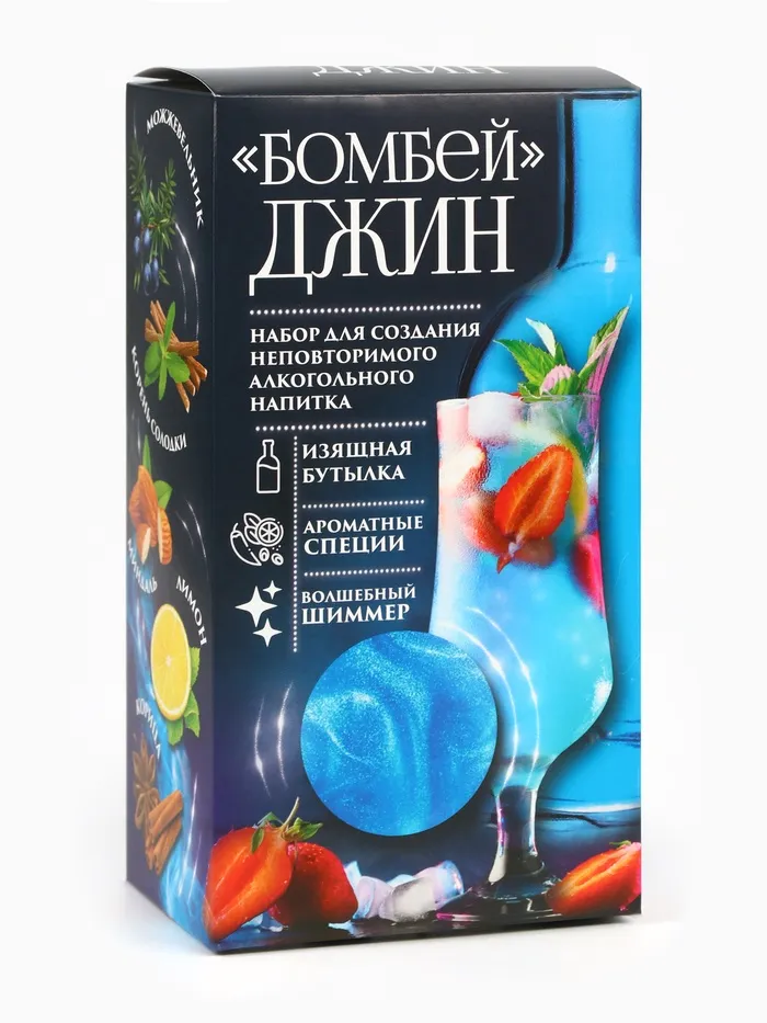 Подарочный набор для приготовления алкоголя «Джин бомбей», набор трав и специй, бутылка, шиммер — Характеристики