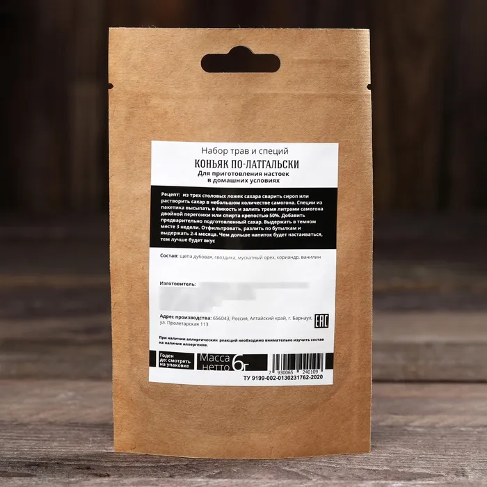 Подарочный набор для приготовления алкоголя «Коньяк»: набор трав и специй, штоф 500 мл., инструкция — Характеристики