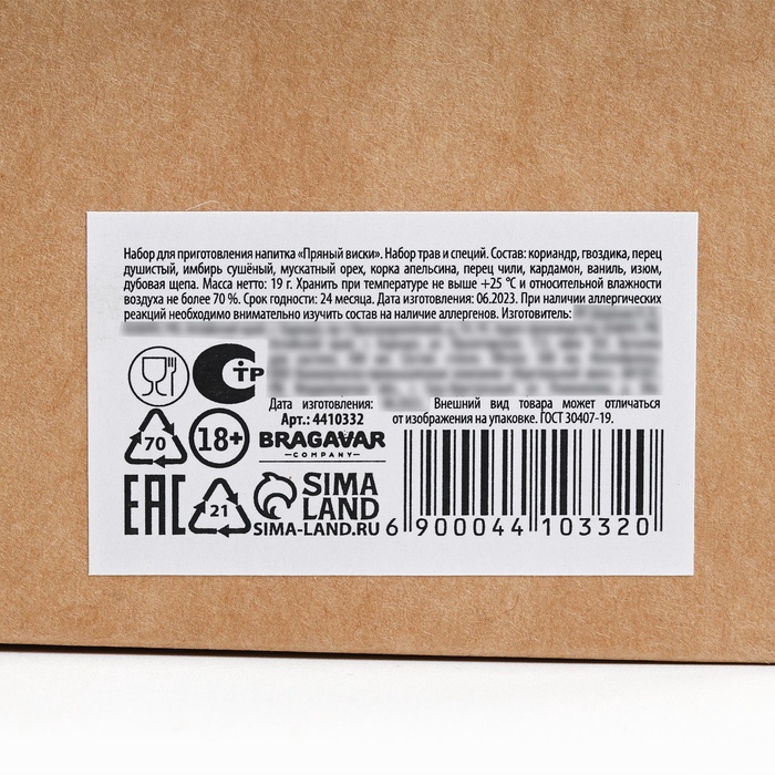 Подарочный набор для приготовления алкоголя «Пряный виски»: травы и специи 19 г, штоф 500 мл., инструкция — Характеристики