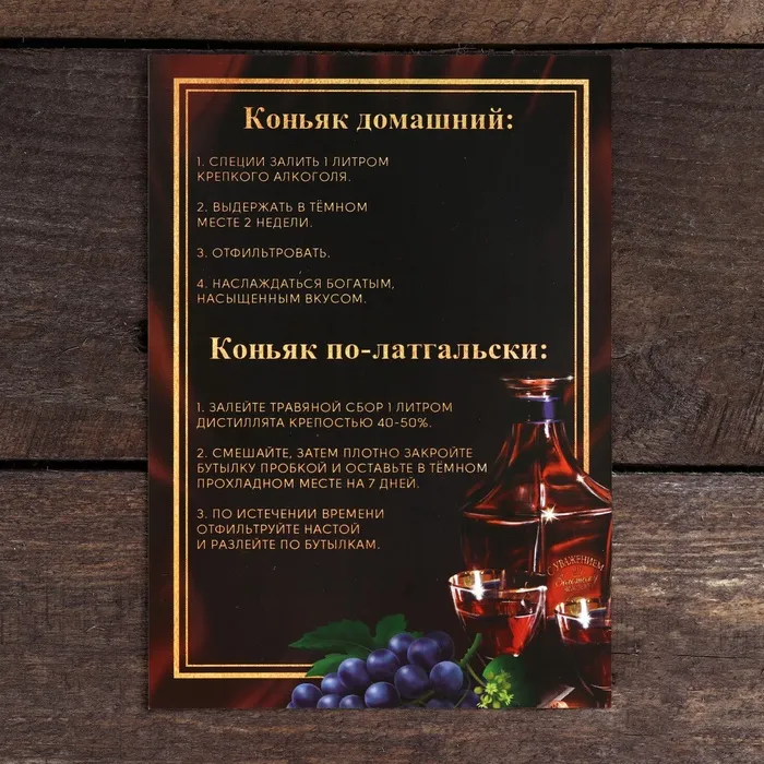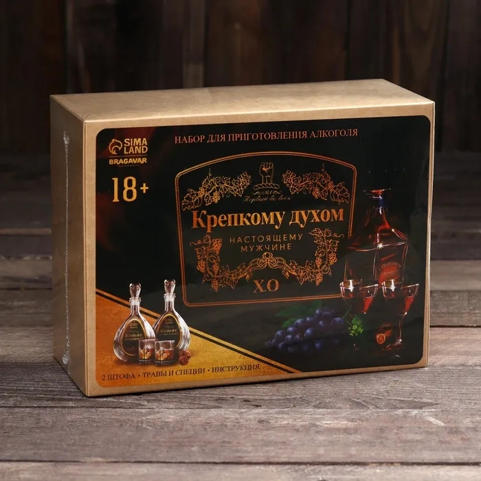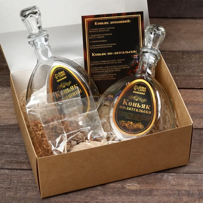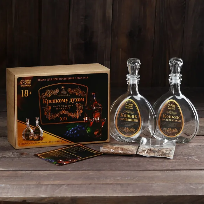 Подарочный набор для приготовления коньяка «Крепкому духом»: набор трав и специй 2 шт. х 20 г, 2 штофа по 500 мл., инструкция — Характеристики