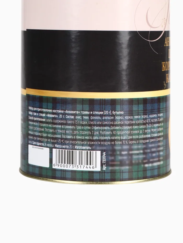 Подарочный набор для приготовления настойки «Аквавита», набор трав и специй 20 г., бутылка 500 мл., инструкция — Характеристики