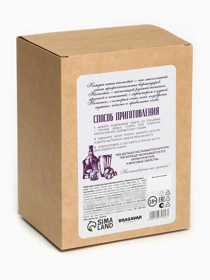 Способ приготовления: содержимое пакета залить 1 л самогона или водки 40%, добавить 200 г сахара, взболтать, настоять в течение 7 дней, отфильтровать. Дать отдохнуть 14 дней.
