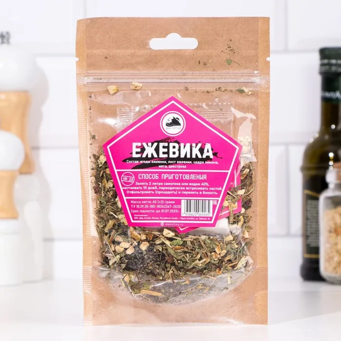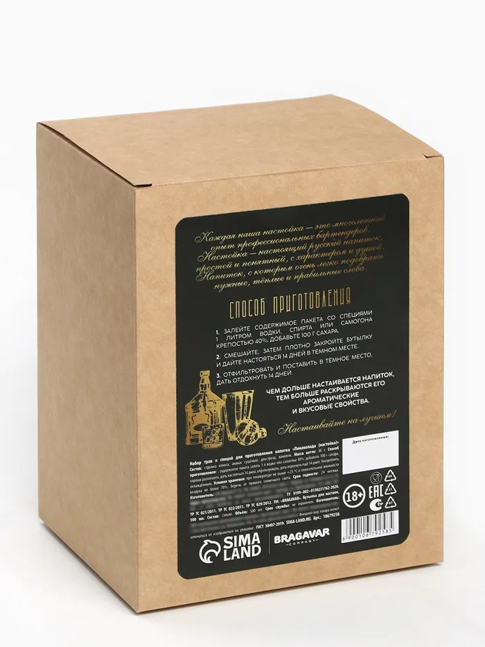 Способ приготовления: содержимое пакета залить 1 л водки или самогона 40%, добавить 100 г сахара, хорошо размешать, дать настояться 14 дней, отфильтровать, дать отдохнуть ещё 14 дней. Употреблять охлаждённым.