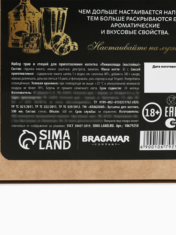 Подарочный набор для приготовления настойки «Пина колада», набор специй, штоф — Характеристики