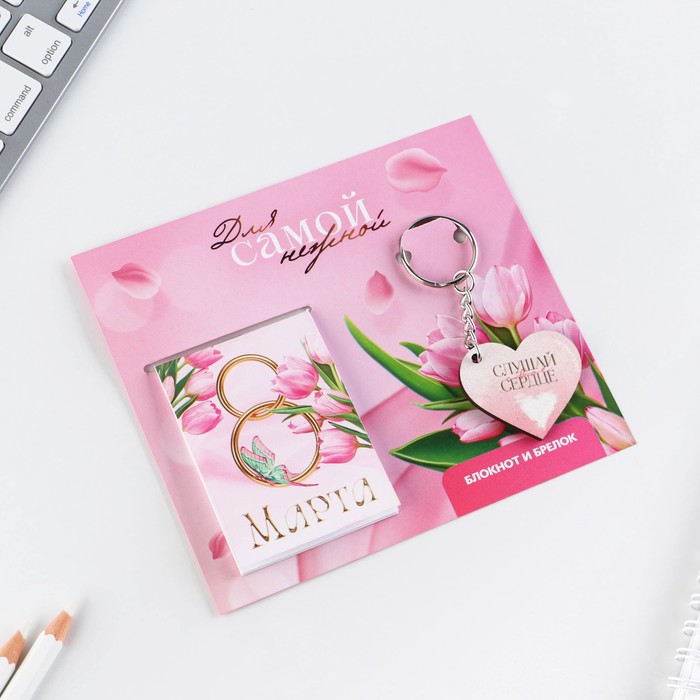 Подарочный набор «Для самой нежной. С 8 марта», блокнот и брелок — Характеристики
