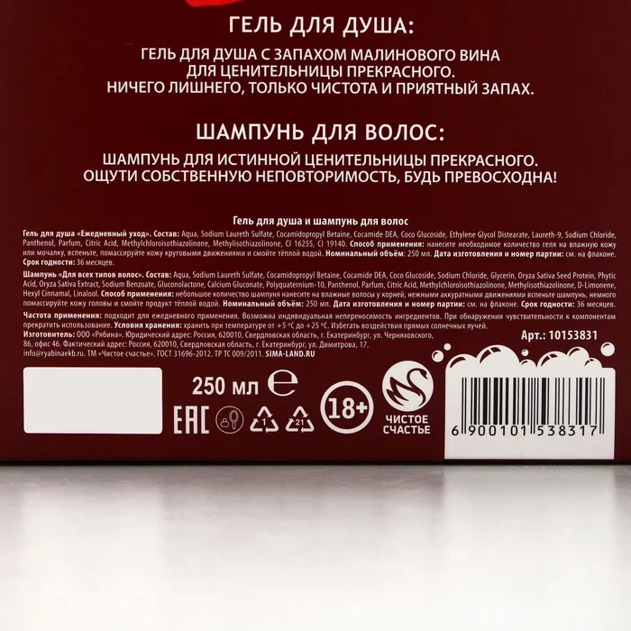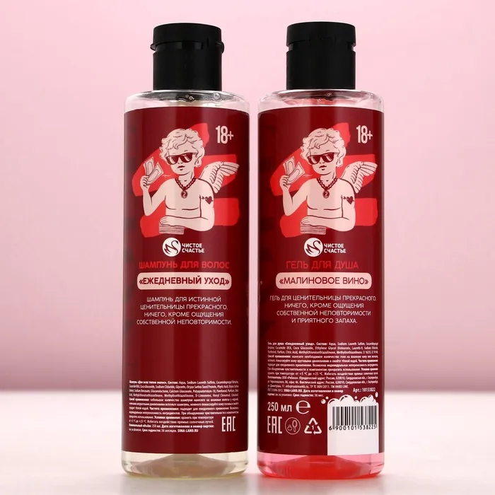 Подарочный набор «Для ценительницы прекрасного»: гель для душа и шампунь для волос, 2×250 мл, 18+, Чистое счастье — Характеристики