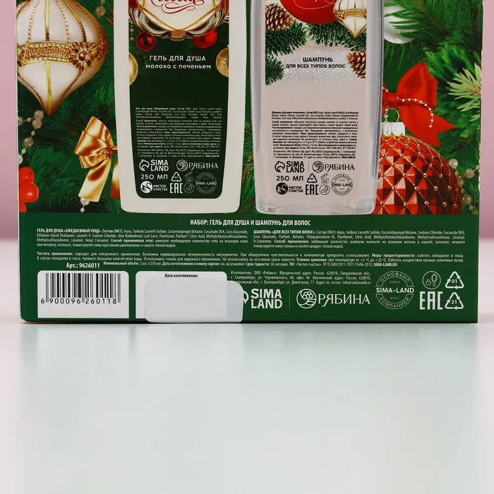Подарочный набор «Для зимнего ухода»: гель для душа и шампунь для волос, 2×250 мл, Чистое счастье — Характеристики
