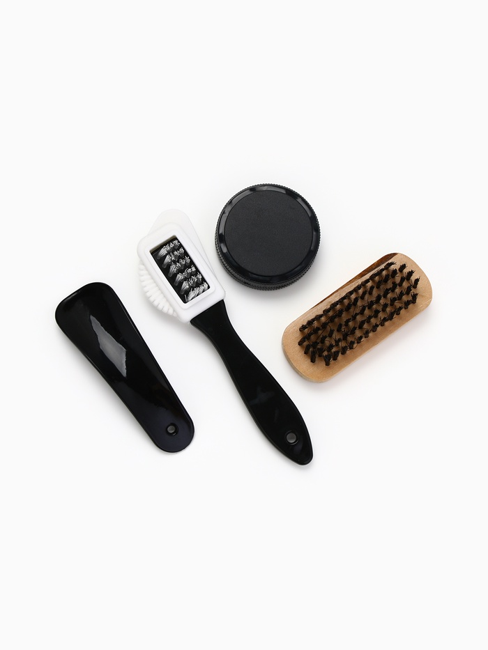 - Высокое качество материалов: щётки, губки и лопатки изготовлены из прочных и долговечных материалов, обеспечивающих бережный уход за обувью.