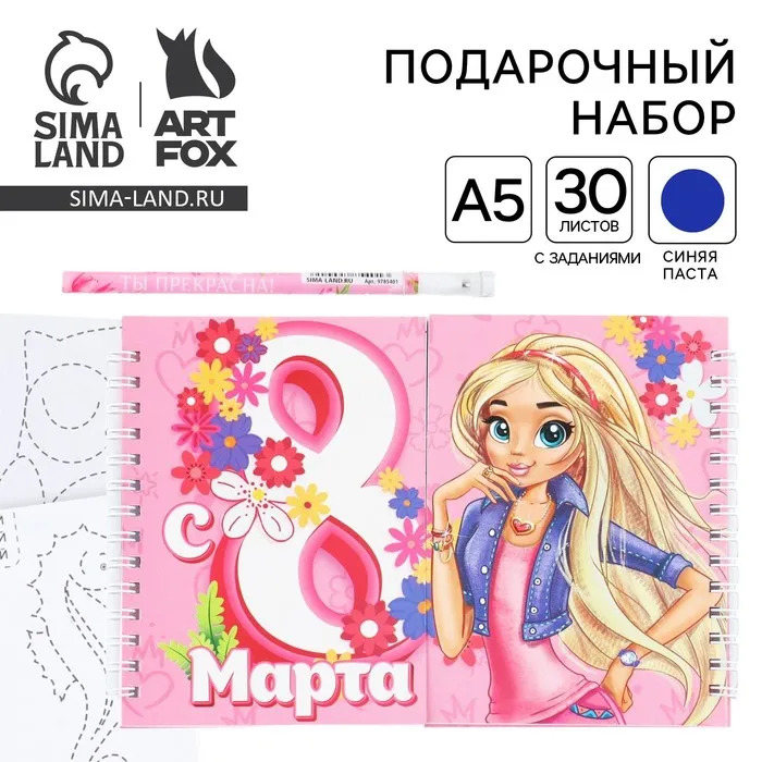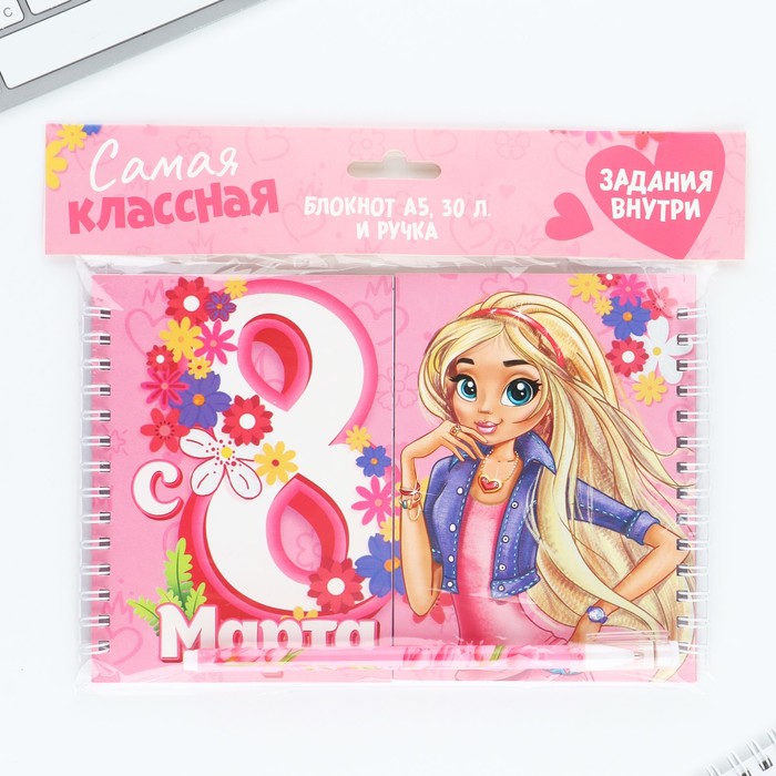 Подарочный набор, двойной блокнот с заданиями и ручка «Самая классная, с 8 марта» — Характеристики