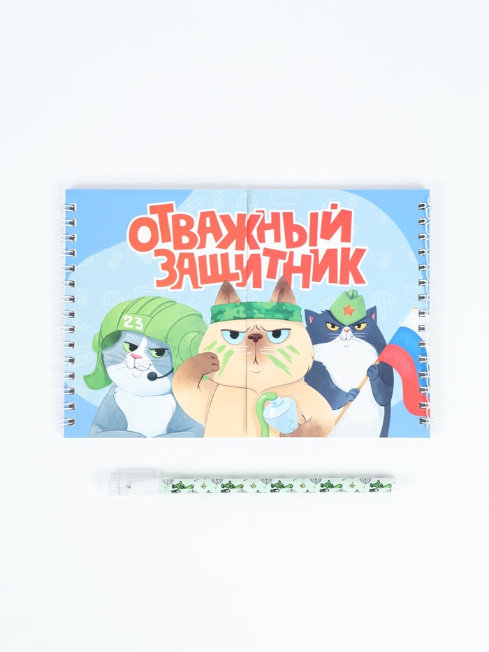Подарочный набор, двойной блокнот с заданиями, ручка «Отважный защитник» — Характеристики