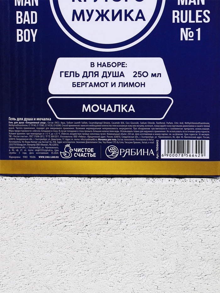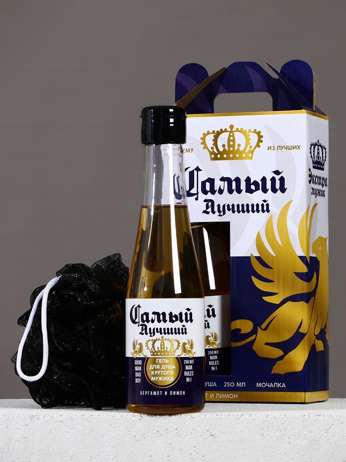 Подарочный набор «Экстра мужик»: гель для душа 250 мл и мочалка для тела, Чистое счастье — Характеристики